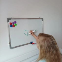 A tábla lehetővé teszi az egyszerű írást és törlést speciális filcekkel és a csomaghoz tartozó mágneses szivaccsal.