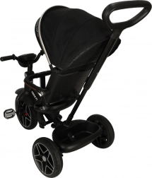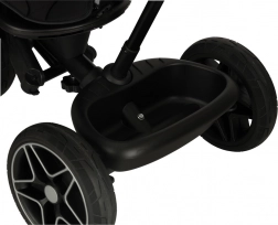 A háromkerekű számos biztonsági elemmel van felszerelve, beleértve az öveket és az összecsukható fedőt, amelyek biztosítják gyermekének biztonságát minden utazás során.