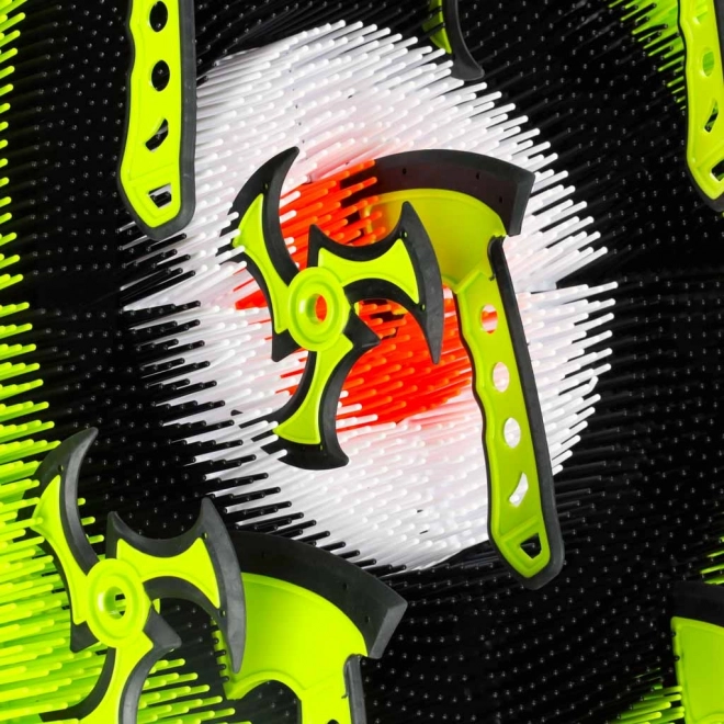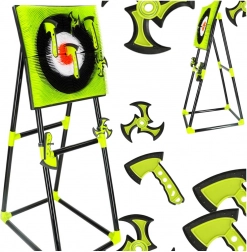 Fedezd fel az akciódús, ninja-világ ihlette célbadobó szórakozást – a szilikon fejszékkel és surikenekkel a gyerekek biztonságosan gyakorolhatják a célzást és a koncentrációt. A masszív, szabadon álló keret állvánnyal gyors összeszerelést és kényelmes tartozéktárolást tesz lehetővé.