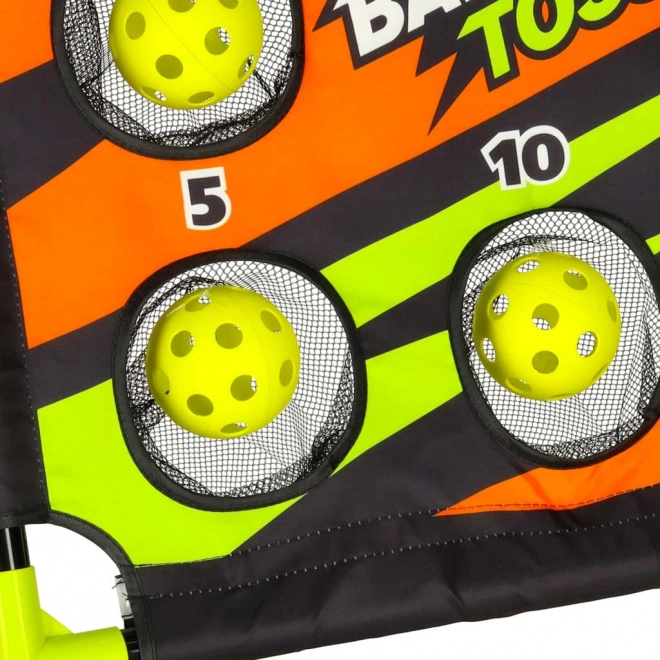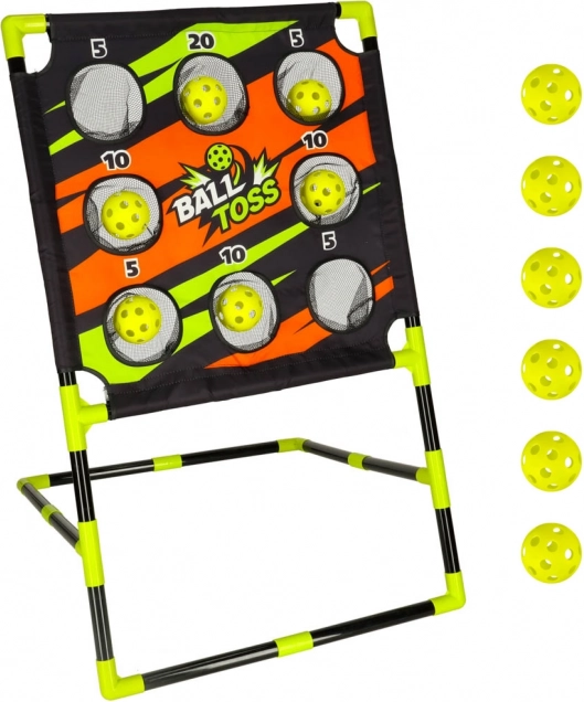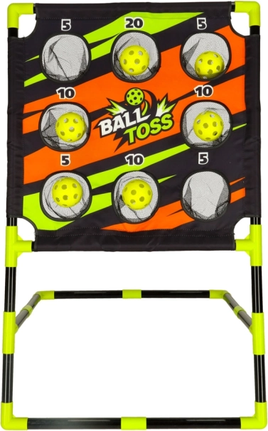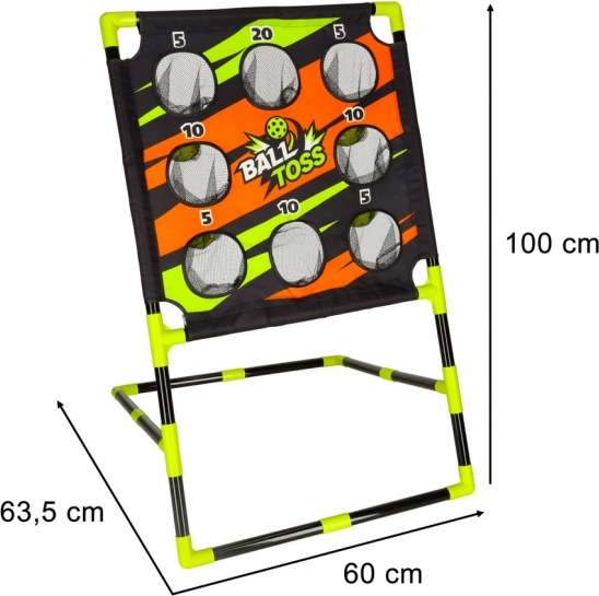 A jól olvasható 5, 10 és 20 pontos jelölés támogatja a fair versengést és ösztönzi a fokozatos fejlődést. A hat perforált labda kb. 7 cm átmérővel biztonságos és jól fogható – ideális a technika, a dobássebesség és az erő gyakorlásához.