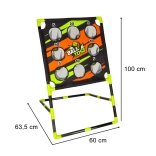 Változtassa a szabadidőt izgalmas versennyé! A KIK edzőjáték pontozott nyílásokkal fejleszti a gyerekek és felnőttek pontosságát, becslését és koncentrációját. A könnyű és stabil, textil céltáblás szerkezet pillanatok alatt használatra kész, kompakt méreteinek köszönhetően pedig könnyen áthelyezhető a kertbe, teraszra vagy a gyerekszobába.
