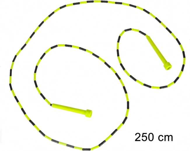 A műanyag gyöngyök védik a kötelet, javítják a ritmust és a láthatóságot forgás közben. A 250 cm-es hossz könnyen állítható gyermekek és felnőttek számára, így ideális a teljes testes edzéshez – lábak, farizmok, core és karok. A könnyű, kompakt kivitel bárhová elkísér.
