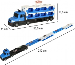 Egyetlen mozdulattal 210 cm hosszú versenypályává alakítható az autószállító. Játék bárhol és bármikor, otthon és útközben.