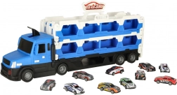 A kétszintes autószállító biztonságosan befogadja az összes járművet, így egyetlen kisautó sem vész el, és a játék nem foglal sok helyet.