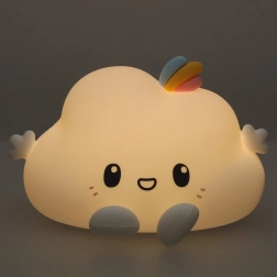 Ez a mosolygós felhőt formázó gyerek éjjeli lámpa nyugalmat és harmóniát hoz a gyerekszobába. A pihe-puha szilikon kellemes tapintású és biztonságos a kicsiknek, miközben a finom fény segít legyőzni a sötétségtől való félelmet és támogatja a nyugodt elalvást.