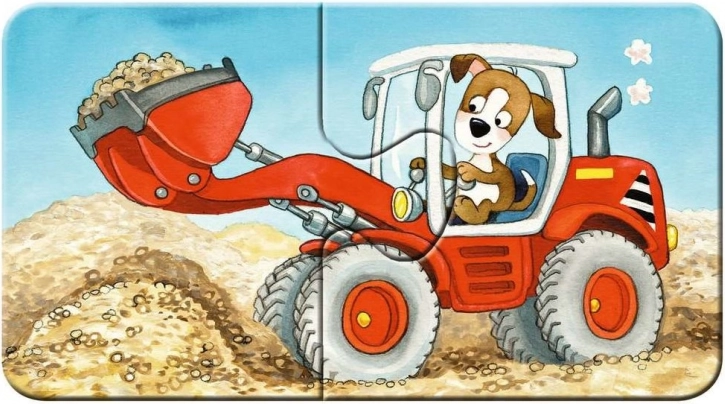 Fedezd fel a legkisebbek első kirakóélményét a Ravensburger puzzle készletével. Kilenc egyszerű, két darabból álló kirakó állatok az építkezésen témával, amely fejleszti a finommotorikát, a koncentrációt és a fantáziát. Az extra erős kartonból készült elemek masszívak, biztonságosak és ideálisak a kisgyermek kezekbe.