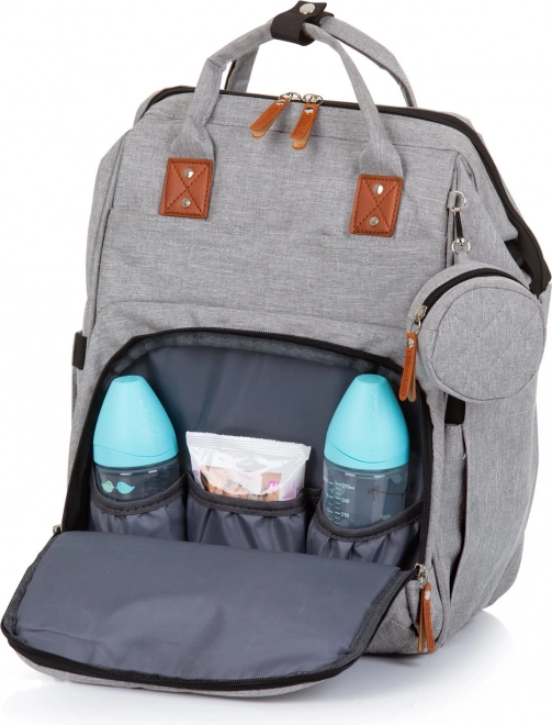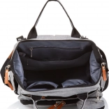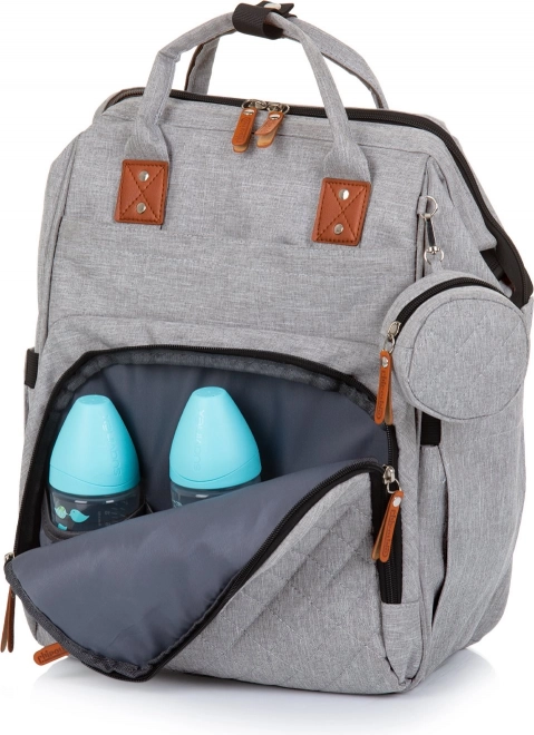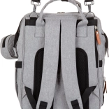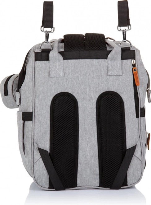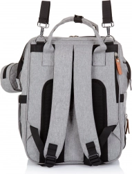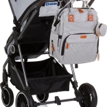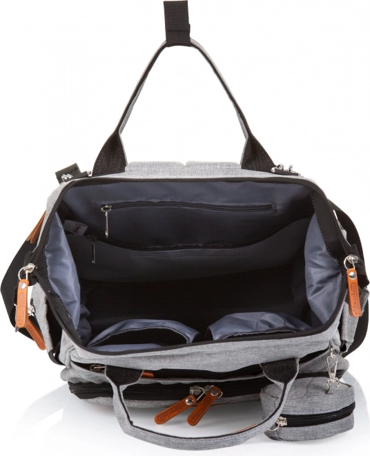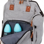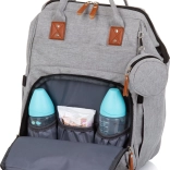 Stílusos pelenkázó hátizsák szürke színben, amely ötvözi a modern dizájnt a maximális funkcionalitással. A számos zsebnek, köztük három belső termo zsebnek a cumisüvegekhez köszönhetően mindent gyorsan megtalálsz – a pelenkáktól az uzsonnáig. A hátizsák könnyen rögzíthető a babakocsi tolókarjára, és a párnázott pántoknak hála kényelmesen viselhető háton is.
