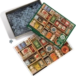 Fedezze fel a minőségi COBBLE HILL kirakót retro teásdoboz motívummal, amely a részletek és a gyűjtői témák kedvelőinek is örömet szerez. Az eredeti kivágó stancolás nem követ szabványos rácsot, ami magasabb nehézségi szintet és egyedülálló kirakási élményt nyújt.