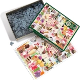 Élvezze a szórakoztató kirakózást a COBBLE HILL Jeges finomságok témájú kirakóval. A darabok szokatlan formájúak a szabálytalan stancolásnak köszönhetően, ami nagyobb kihívást és hosszabb szórakozást nyújt. A csomag része egy 31,6 × 22,9 cm-es mintakép, a kész puzzle mérete 48,9 × 67,6 cm.