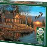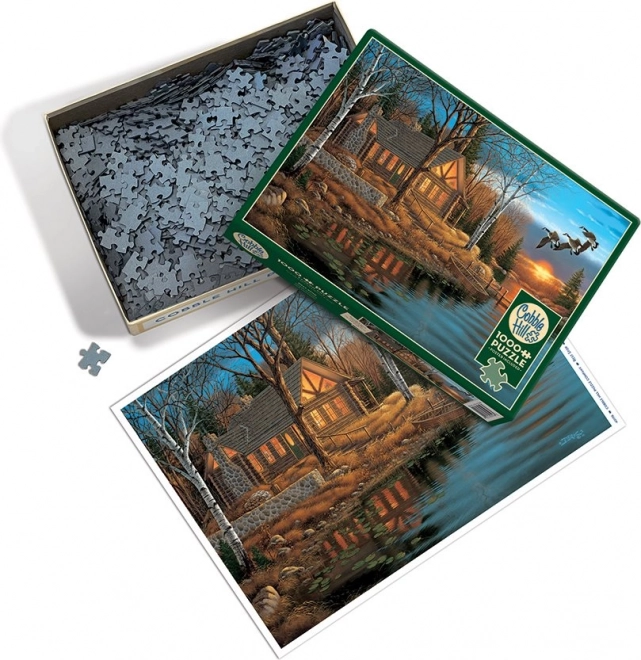 A nyugodt tóparti kunyhó naplementében ábrázolt, hangulatos motívuma minden természet- és relaxációkedvelőt elbűvöl. A 1000 darabos COBBLE HILL puzzle a szabálytalan alakú elemekkel hívja fel magára a figyelmet, amelyek nem követik a standard rácsozatot – a kirakás szórakoztatóbb és egyben valamivel igényesebb.