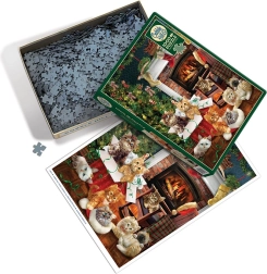 A puzzle- és macskakedvelők imádni fogják. Az ünnepi hangulatú motívumot egyedi stancolás egészíti ki, amely fokozza a szórakozást és a kihívást kirakás közben. A szabálytalan formák miatt a sarkok és élek nem mindig egy vonalban helyezkednek el, így hosszabb és kielégítőbb élményt nyújt.