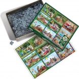 A csomagban található egy 31,6 × 22,9 cm-es minta, amely megkönnyíti a tájékozódást a színekben gazdag jelenetben. A kész puzzle mérete kb. 67,6 × 48,9 cm, ideális keretezéshez és kiállításhoz.