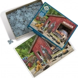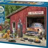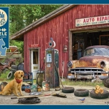 A COBBLE HILL Autószerviz kirakó lenyűgöző vintage jelenetet hoz el, tele kidolgozott részletekkel – rozsdásodó veterán, fa garázs, régi szerszámok és ikonikus benzinszivattyú. A szabálytalan stancolásnak köszönhetően az élek és sarkok nincsenek egy tengelyben, ami növeli a kirakás nehézségét és élvezetét, friss élményt adva még a tapasztalt puzzlereknek is.