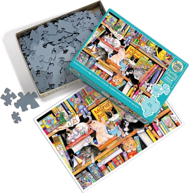 A COBBLE HILL egyedi, szabálytalan kivágása nem követi a klasszikus rácsmintát, ezért a kirakás szórakoztatóbb és valamivel kihívást jelentőbb. A dobozban 31,6 × 22,9 cm méretű minta is található, amely megkönnyíti a tájékozódást az „A macskamesék ideje” motívumban, tele bájos cicákkal.