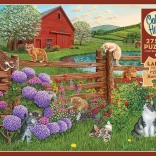 A COBBLE HILL vágása nem a klasszikus rácsot követi – a darabok egyedi formájúak, a sarkok és az élek nem esnek egy vonalba. Ez érdekes kihívást ad a kirakáshoz, és segíti a finommotorika, a koncentráció és a türelem fejlesztését. Összeállítva kb. 67,7 × 48,9 cm méretű képet kap, idilli farmmal, piros pajtával és játékos macskákkal.