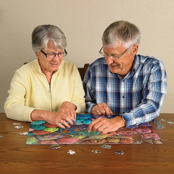 A COBBLE HILL Fonál utáni vágy XL puzzle úgy készült, hogy kényelmes kirakózást biztosítson a szórakozás feladása nélkül. Az extra nagy elemek jól foghatók, könnyen kezelhetők, és segítik a finommotorika fejlesztését. A nem szabványos, egyedi formájú stancolás növeli a vonzerőt, és élvezetesebb élményt kínál, mint a hagyományos rácsos stancolás.