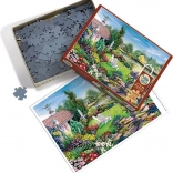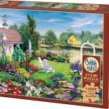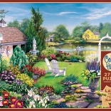 A COBBLE HILL speciális, rácsot nem követő stancolása friss lendületet ad a kirakásnak – a sarkok és szélek nem mindig egy vonalban vannak, így a kirakás érdekesebb és szórakoztatóbb, mint a hagyományos puzzle-öknél. Összeállítás után egy látványos, kb. 67,7 × 48,9 cm-es képet kap festői kerttel, virágokkal és békés tavacskával.