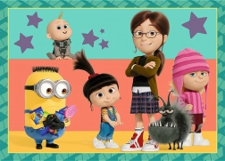 Gyerek puzzle 4 az 1-ben a Gru és a Minyonok filmes világból, négy önálló kirakóval 285 × 205 mm méretben. A különböző darabszám fiatalabb és idősebb gyerekeknek is ideális, és fejleszti a finommotorikát, a türelmet és a logikus gondolkodást. Lengyelországban készült környezetbarát anyagokból.