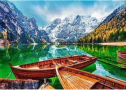 Fedezze fel a Dolomitok varázsát ezzel az 500 darabos TREFL kirakóval, amely az ikonikus Lago di Braies-t ábrázolja – egy békés tavat hegyek és fából készült csónakok ölelésében. A kiváló minőségű kivitelezés, a kellemes matt felület és a precízen vágott elemek kényelmes kirakást és gyönyörű végeredményt biztosítanak.