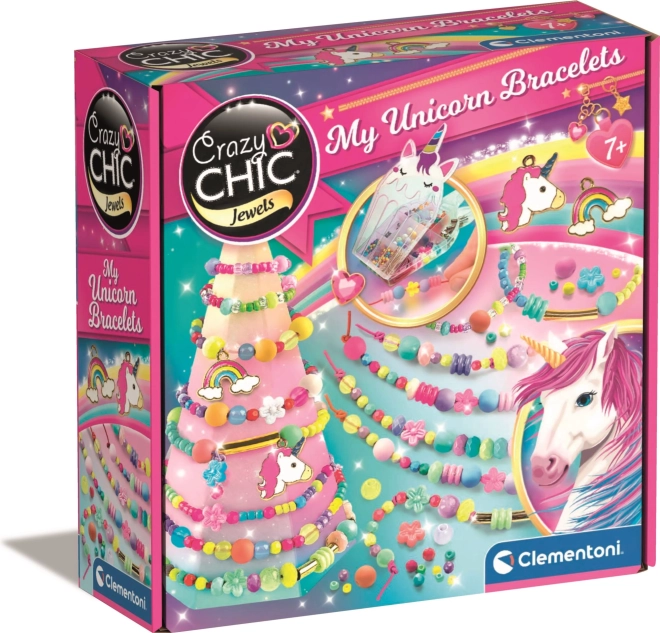 Készíts saját varázslatos karkötőket az egyedülálló CLEMENTONI Crazy Chic készlettel. A csomagban mindent megtalálsz a trendi, rugalmas karkötők elkészítéséhez egyszarvús és szivárványos medálokkal, egy stílusos kiállítóállvánnyal és egy gyöngytartó dobozzal. Az ékszerkészítés fejleszti a gyerekek kreativitását, finommotorikáját és képzeletét.