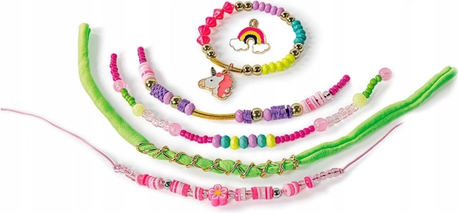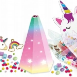Készlet kis tervezőknek, akik imádják a színeket, a csillogást és az egyszarvúk varázslatos világát. A rugalmas zsinóroknak és a variálható gyöngyöknek köszönhetően könnyedén készíthetsz egyedi karkötőket magadnak és barátnőidnek. Az egyszarvús és szivárványos medálok mesés hangulatot kölcsönöznek minden ékszernek.