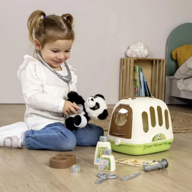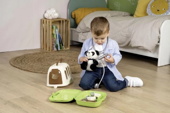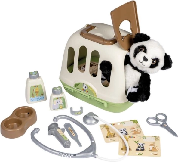 A bájos plüss panda szeretetteljes gondoskodásra ösztönzi a gyerekeket, fejleszti a szociális készségeket, és valósághű dimenziót ad a játéknak. Remek társ a kis állatorvosok számára.