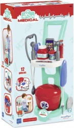 Fedezze fel, hogyan tanulhatnak a gyerekek játékosan az orvoslás világáról ezzel a gyermekorvosi kocsival. A készlet része egy bőrönd és gazdag tartozék, amely támogatja a kreatív orvosos szerepjátékot, fejleszti a finommotorikát és a kommunikációs készségeket. Az 56 cm magas, stabil kocsi könnyű kezelhetőséget kínál, és mindent tartalmaz a kis páciensek megvizsgálásához.