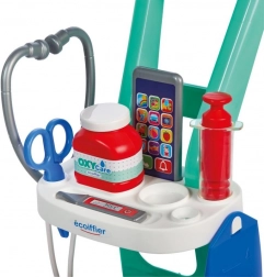 A készlet bőröndöt és élethű kiegészítőket tartalmaz, például sztetoszkópot, fecskendőt, hőmérőt, ollót és további elemeket a páciens vizsgálatához. A mindössze 1,085 kg-os, könnyű szerkezet garantálja a kényelmes mozgatást a lakásban és a gyerekszobában.