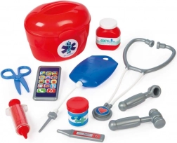 A szett része egy piros orvosi bőrönd, amelybe a gyerekek az összes eszközt elpakolhatják. Minden egyben marad, készen a következő játékra.