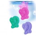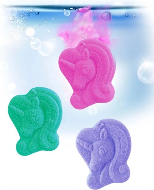 Minden tabletta a vízbe dobva pezsegve feloldódik, és karamelltorta illattal tölti meg a fürdőt. A három különböző szín – rózsaszín, lila és kékeszöld – minden fürdéshez más hangulatot ad. Olyan gyerekeknek, akik szeretik az unikornisokat és a vidám színeket.