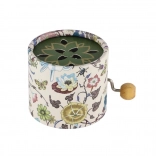 A zenegép többféle színváltozatban érhető el dekoratív virágmintával. A kézi mechanikus meghajtás nem igényel elemet, így mindig használatra kész. 3 éves kortól ajánlott.