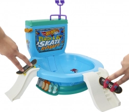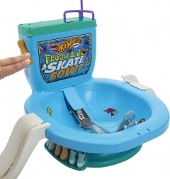 A HOT WHEELS Skate Flush & Go egy szórakoztató ujjdeszkás gördeszkapark, amely a „WC-csészét” tökéletes trükk-bowllá alakítja. A kar megnyomásával a deszka egyenesen a pörgős menetekbe indul, majd jöhetnek a rámpaugrások, a korláton csúszások és a hátsó rámpáról a droppok. Ideális készségfejlesztéshez és végtelen játékhelyzetekhez.