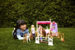 Játssz lovas napot a Barbie Ultimate Stable szettel, amely 360°-os játéktért és rengeteg kiegészítőt kínál a lógondozáshoz. A gyerekek segíthetnek Barbie babának az etetőállomáson, tisztításban és kefélésben a gondozó zónában, gyakorolhatják az ugrásokat az akadályokon, majd büszkén kiállíthatják a szalagokat a trófeafalon. Nem hiányzik a rózsaszín „plug and play” kert sem, és az istálló könnyen összehajtható az egyszerű tárolás érdekében.