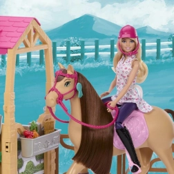A szett tartalmaz egy lovas öltözetű Barbie babát, egy valósághű részletekkel rendelkező lovat hosszú, puha sörénnyel, fedett istállót, valamint gazdag kiegészítőcsomagot a képzeletbeli játékhoz. Ideális 3 éves kortól azoknak a gyerekeknek, akik szeretik a lovakat, az állatgondozást és a saját történetek mesélését.