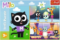 Ez a Milo kiscica népszerű motívumával készült gyerek kirakó remek választás első puzzleként. 24 extra nagy elem a legkisebbeknek is könnyen kézben tartható, fejleszti a finommotorikát, a türelmet és a logikus gondolkodást. Kirakva egy nagy, színes, 60 × 40 cm-es képet kapunk, amelyet a gyerekek imádni fognak.