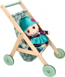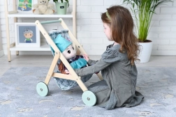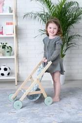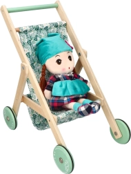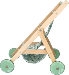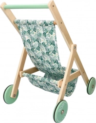 Stílusos, természetes fából készült babakocsi levélmintás textil üléssel, ideális a kis gondoskodóknak. Könnyű, stabil, és remekül fejleszti a képzelőerőt és a finommotorikát is. Kompakt méreteinek köszönhetően bármelyik gyerekszobába illik.