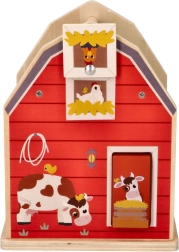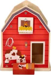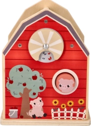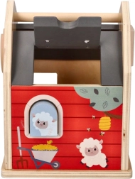 A doboz öt színes formát tartalmaz, amelyek különböző farmállatokat – például bárányt, malacot és tehenet – ábrázolnak, és a ház oldalán található megfelelő nyílásokba illeszthetők. A formák elég nagyok, hogy a gyerekek önállóan is biztonságosan játszhassanak velük.