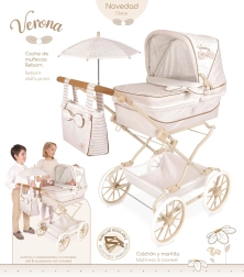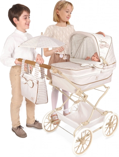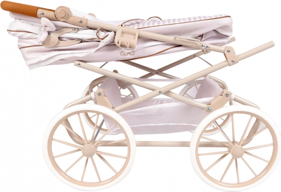 Praktikus részletei, mint a összecsukható kupola, tároló kosár, rugós ringatás és a levehető mózeskosár-takaró kényelmet biztosítanak minden sétánál a babával. A gazdag felszereltség tartalmazza a napernyőt (Ø 50 cm), a matracot és takarót, valamint a díszes táskát, mely harmonizál a kollekcióval.