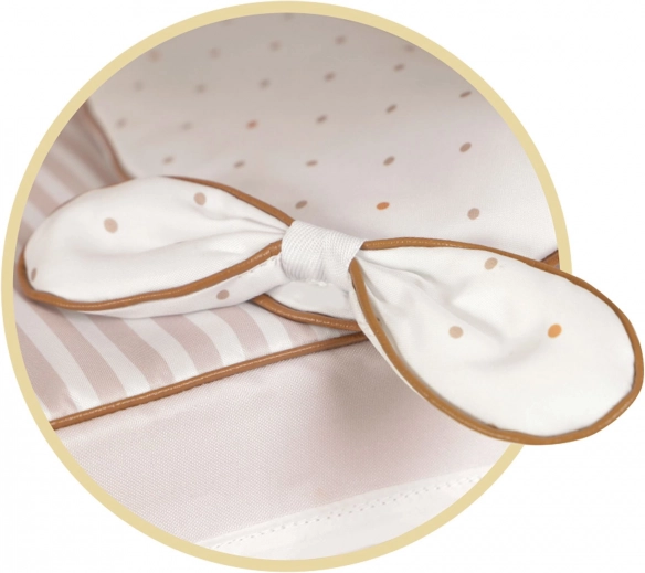 A csomag része a napernyő (Ø 50 cm), a levehető táska, matrac és takaró, patentos mózeskosár-takaró és a tágas alsó kosár – mind a kollekció egységes stílusában.
