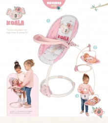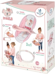 A KOALA kollekció stílusos, multifunkciós 3 az 1-ben babaszéke és hintája valósághű babagondozást kínál a gyerekeknek. Az okos rögzítőrendszernek köszönhetően könnyedén átalakítható etetőszékké, hintává vagy önálló hordozóvá. Kínál cserélhető, kétoldalas ülést biztonsági hevederekkel, műanyag etetőtálcát és könnyű, stabil kialakítást a kényelmes játékhoz. Ideális 3 éves kortól.