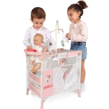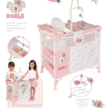 A szett mindent tartalmaz a teljes körű gondozáshoz: hálós, átlátszó ablakkal ellátott babaágyat, levélkékkel díszített forgót, pelenkázó pultot, műanyag etetőszék szettet (palack, tálka, evőeszköz) és nagyméretű, cipzáras gardróbot rúddal és 3 vállfával. A kompakt kivitelnek köszönhetően az egész összeállítás könnyen kezelhető, és játék után gyorsan elpakolható.