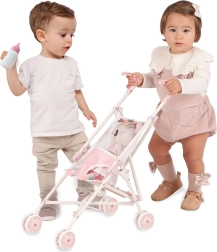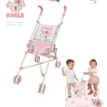 Ez az összecsukható babakocsi az alvó KOALA motívummal, finom dizájnban, fehér alapszínnel, virágmintával és lazacrózsaszín részletekkel készül. Alacsony súlya és könnyű kezelhetősége miatt kisebb gyerekeknek és mindennapos játékhoz is ideális.