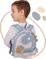 A halványkék alapon látható dínó mama és a kicsinye domináns képe a hátizsákot kedvenc társsá teszi óvodába és kirándulásokra egyaránt.