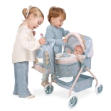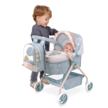 A COCO kollekcióból származó, aranyos babakocsi babáknak praktikus hátizsákkal örömet szerez a kis gondoskodóknak. Stabil felépítést, könnyű kezelhetőséget és hasznos kiegészítőket kínál, beleértve a tároló kosarat és a matracot. A finom színek és az anyadinoszauruszt kicsinyével ábrázoló minta támogatja a kreatív, utánzó játékot.