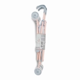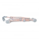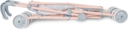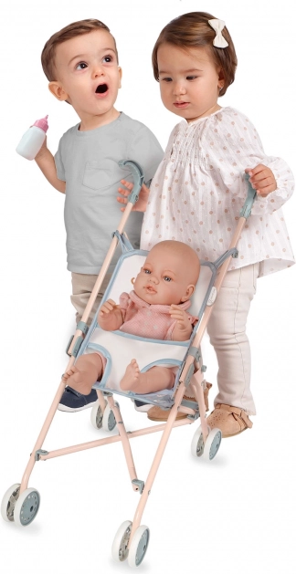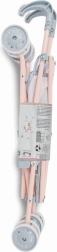 A masszív fémkeret és a szürke-kék árnyalatú, homok- és rózsaszín részletekkel díszített, strapabíró textil hosszú élettartamot és biztonságos használatot garantál. A praktikus ujjbecsípődés elleni biztonsági rendszer védi a gyerekeket az összecsukás során. A babakocsi különböző méretű babákhoz is alkalmas, a hárompontos övnek köszönhetően a baba mindig a helyén marad.