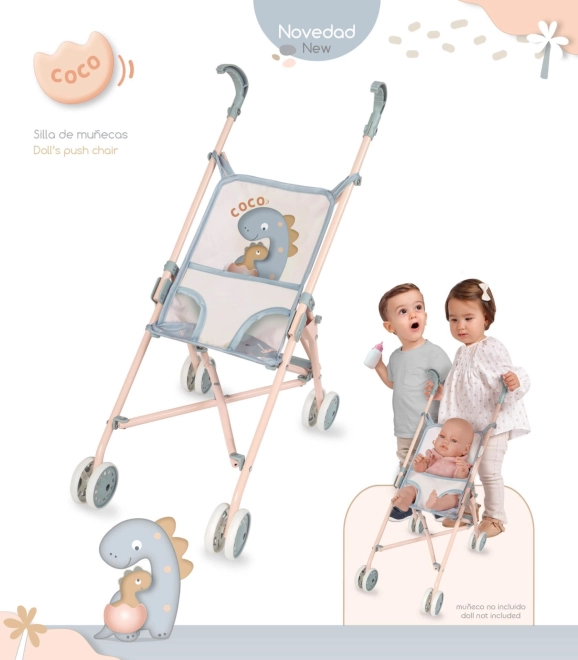 Játékos babakocsi cuki dinoszaurusz motívummal a COCO kollekcióból, amely alacsony tömegével és kompakt méreteivel tűnik ki, így könnyen hordozható és tárolható. Az 56 cm magas tolókar kényelmes irányítást biztosít a kisebb gyerekeknek, és remek társ a mindennapi játékhoz.