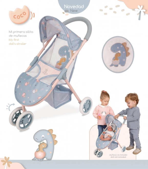 A COCO kollekció könnyű, háromkerekű babakocsija játékos dinoszaurusz mintával, könnyű kezelhetőséggel és biztonságos hárompontos övvel örömet okoz. Kompakt méreteinek és a forgó első keréknek köszönhetően ideális 3 éves kortól, és remekül passzol a mindennapi fantáziajátékhoz otthon és a szabadban is.