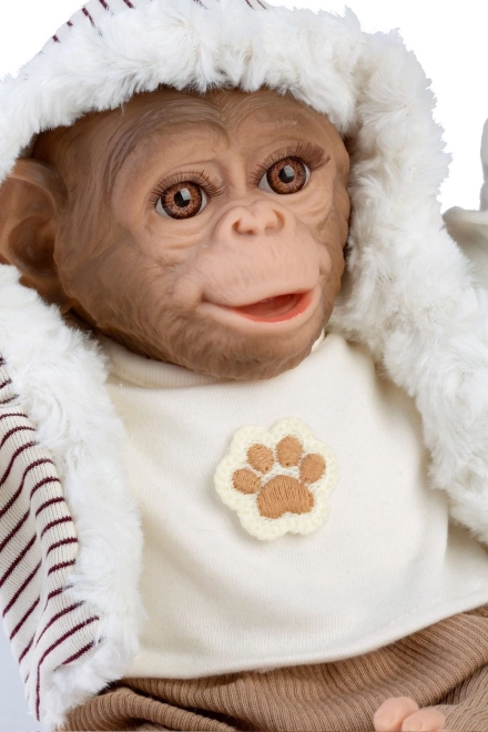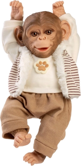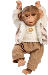 Ez az élethűen kidolgozott kismajom rengeteg örömet és fantáziát hoz a játékba. Puha textil teste kellemes ölelni, míg a részletgazdag vinil fej és végtagok szinte életre keltik. A kismajom pozícionálható – könnyen leültethető vagy kéznél-lábnál felakasztható, így kedvelt játszótárs és a gyerekszoba dekorációja is lehet.