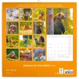 Stílusos, 30 × 30 cm-es, négyzet alakú naptár erdei állatok motívumaival, ideális családi és munkahelyi tervezéshez. Minden oldal minőségi fotóval és praktikus elrendezéssel segíti a feladatok és események átlátható szervezését.