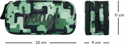 A zöld rejtőzködő mintájú tolltartó alkalmas diákoknak és megadja a stílust a mindennapi iskolai kellékeknek.
